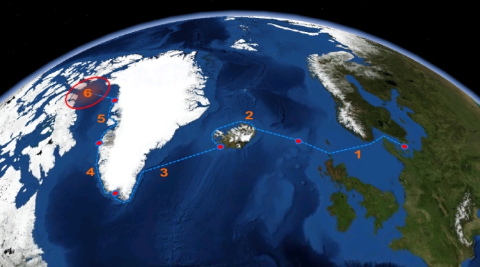 Qaanaaq region. The voyage is devided into six legs of 9-16