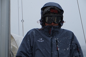 by a white blanket. Winter magic! The helmsman, watching out