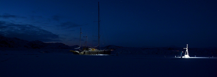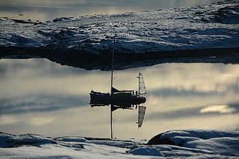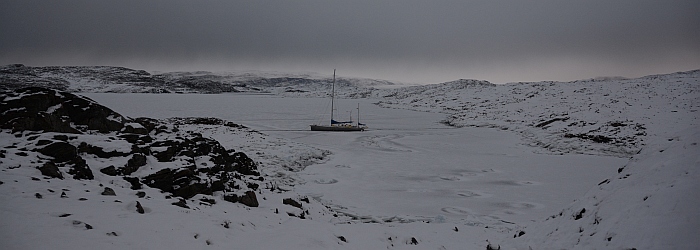 Nanuq mooring at Harward Oer, maybe our winter camp. The village