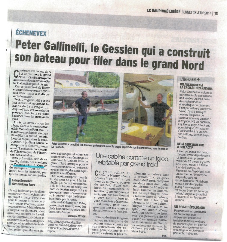 Dauphiné : Nanuq, le bateau conçu par Peter