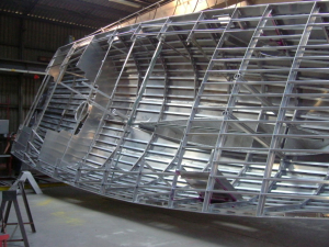 La coque est réalisée en alliage d'aluminium sur structure mixte (nuance 5083 et 5086 pour la structure principale et le bordé). Superstructures au choix en chaudronnerie ou composite sandwich.