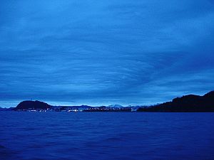 We reached this jewel in the crown of the norvegian costal towns in the middle of the night, at 2am local time. It was unreal to motor amidst buildings in the faint lights of penthouse apartments, living rooms, and hotel rooms, into a canal, and moor directly in the middle of the town. Its architecture is surprising, much more typical of central Europe than of these latitudes, with an uniform building style, which originates from the planned reconstruction of the town in Art Nouveau style after it burned down in about 1920. The town was all ours: we strolled its silent streets, and in the twilight of the high-latitudes summer nights we climbed the steps to the hill overlooking the complex structure of fjords and islands in this region: a great view, giving a third dimension to the coastline we had been following in the last hours.