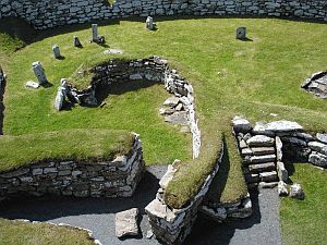 Après l'émotion de quitter les latitudes arctiques, c'est celle de baisser le drapeau de courtoisie norvégien qui nous a accompagné depuis de nombreuses milles magiques: Jan Mayen, Norvège, Spitzberg... Le soir arrive et bientôt nous apercevons le phare d'entrée du port de Lerwik qui nous guide par son secteur blanc. A minuit, heure du bord (UTC), nous frappons nos aussières sur les taquets de notre voisin de port, à couple en troisième position... 220 milles nautiques et 28 heures sonnent le retour à la civilisation ... vieille ici de 3000 ans; les ruines de fortifications datant de 1000 a.c. en sont une belle illustration.